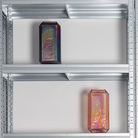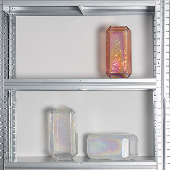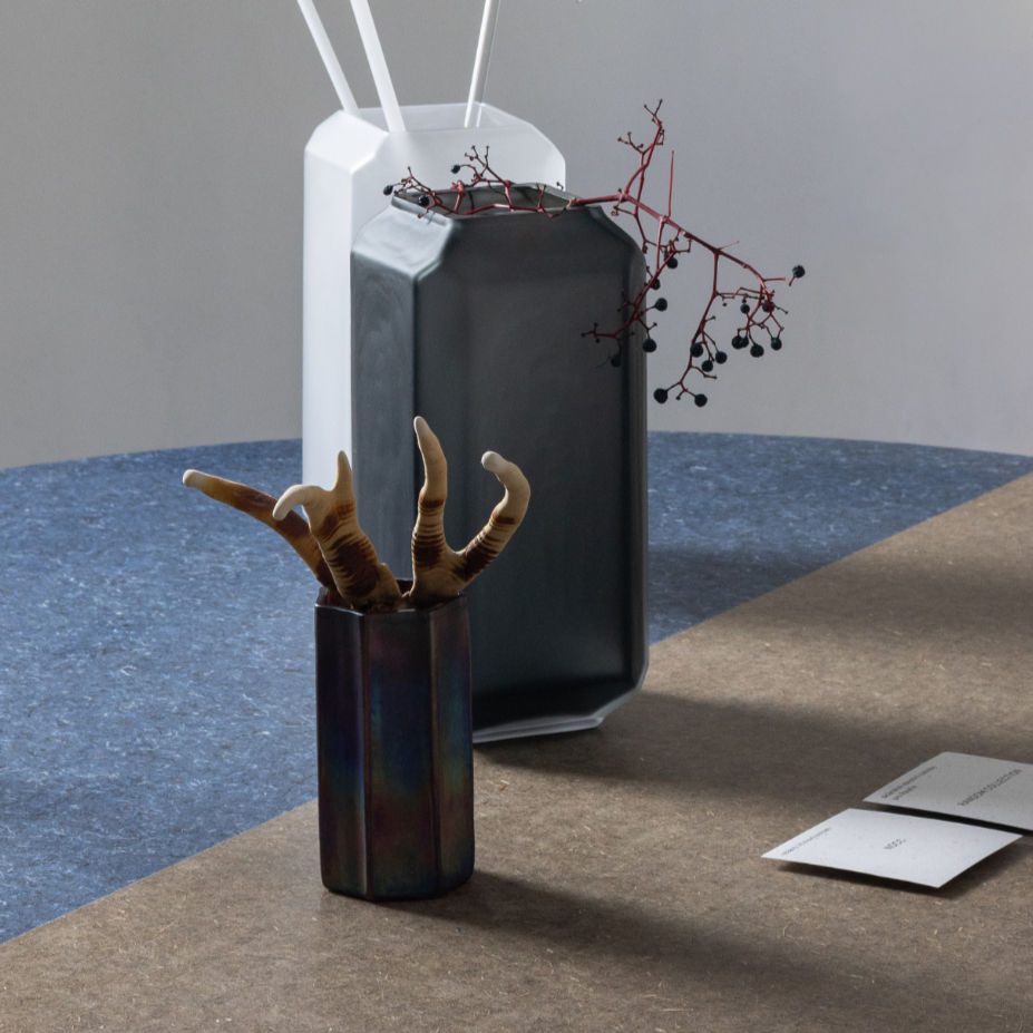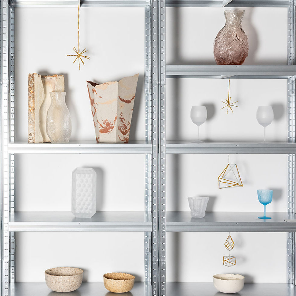 Ručně foukáno do inovativních sklářských forem vypěstovaných z podhoubí (mycelia) na odpadních dřevěných pilinách.
